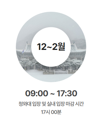 • 청와대 정문 종합 안내소에서 매일 오전 9시와 오후 1시에 신청할 수 있습니다.