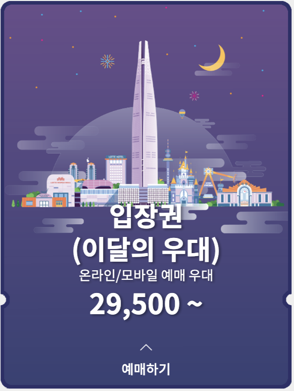 롯데타워 전망대는 현장에서 예매하지 않는다면 100% 할인을 받을 수 있다는 뜻입니다!