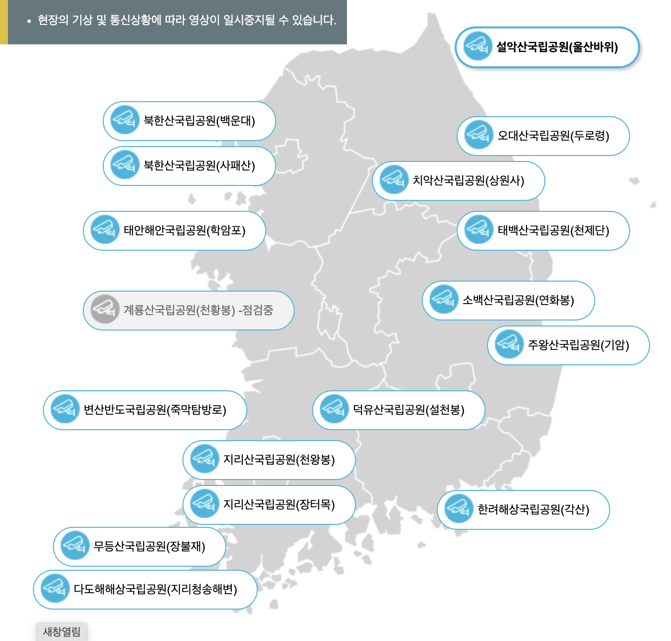 한국에 있는 국립공원 17곳의 cctv를 모두 모아 두었습니다.