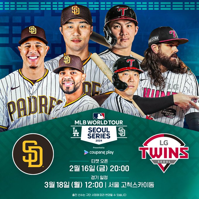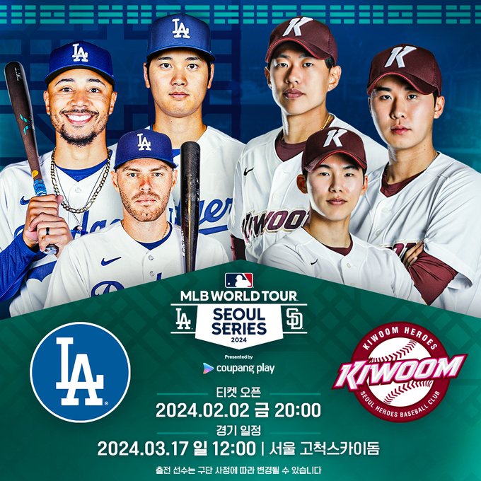 2024 MLB 월드 투어 서울 시리즈에서는 팀 코리아와 샌디에고 파드리스, 그리고 LA 다저스가 참가합니다. (오타니!!!)