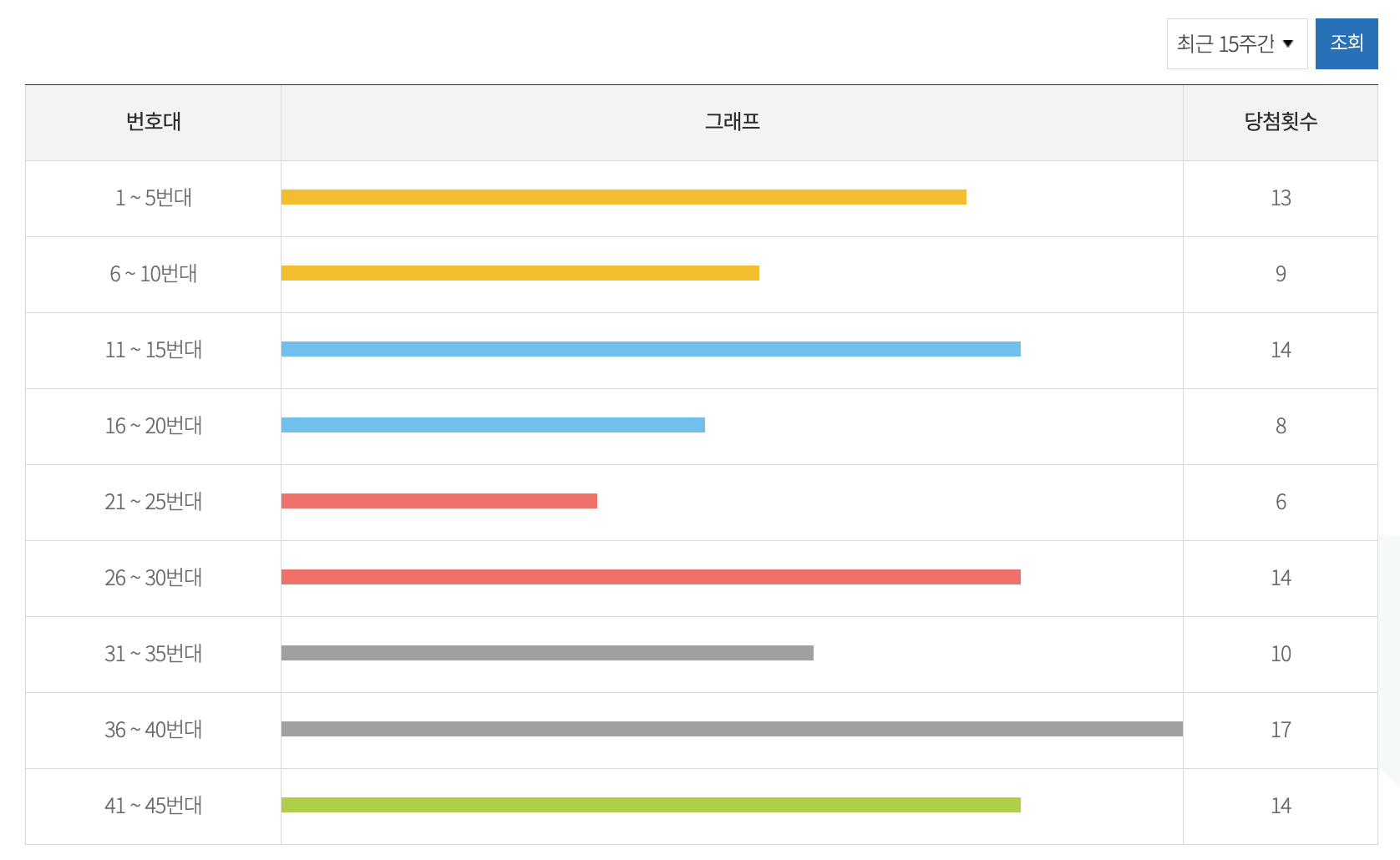 구간별 출현횟수는 최근 15주간의 통계를 바탕으로 작성했습니다.