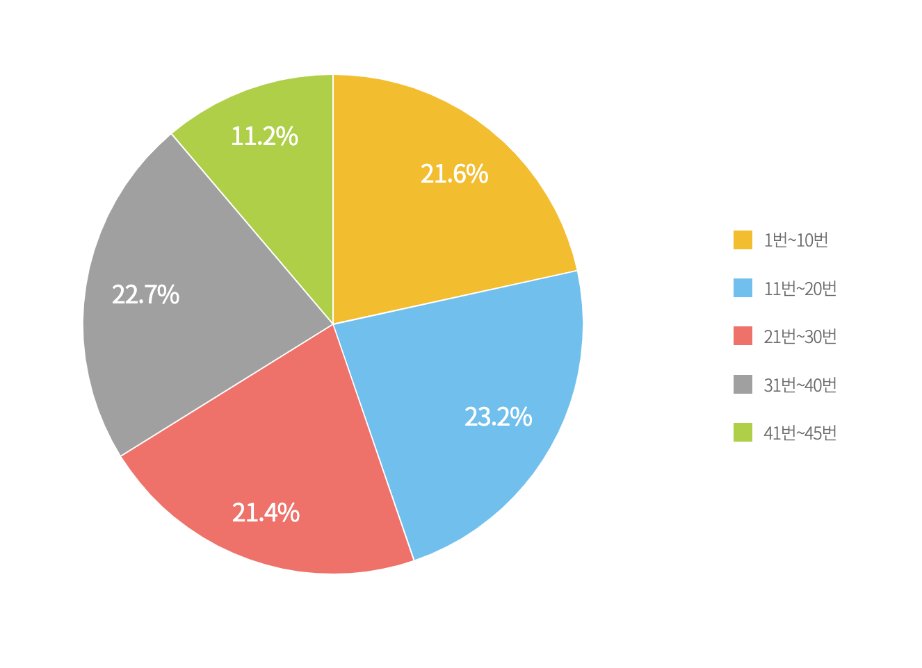 | 5위 | 11.2% | 41번~45번 | 초록색 |