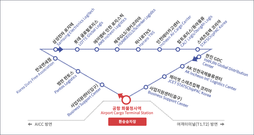 - AICC ↔ T1 ↔ T2 셔틀버스