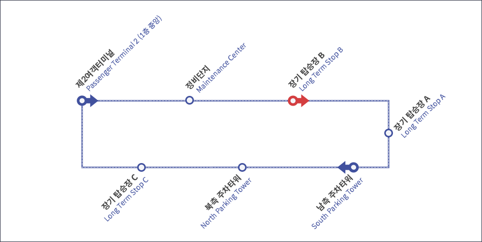 - AICC ↔ T1 ↔ T2 셔틀버스