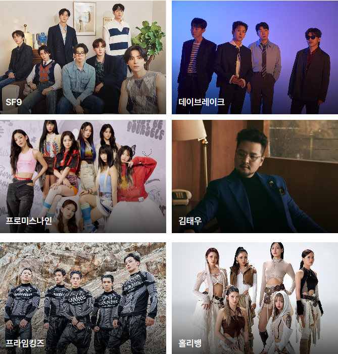 • 1차 라인업: 데이브레이크(Daybreak), SF9(에스에프나인), 프로미스나인, 김태우, 프라임킹즈, 홀리뱅 등