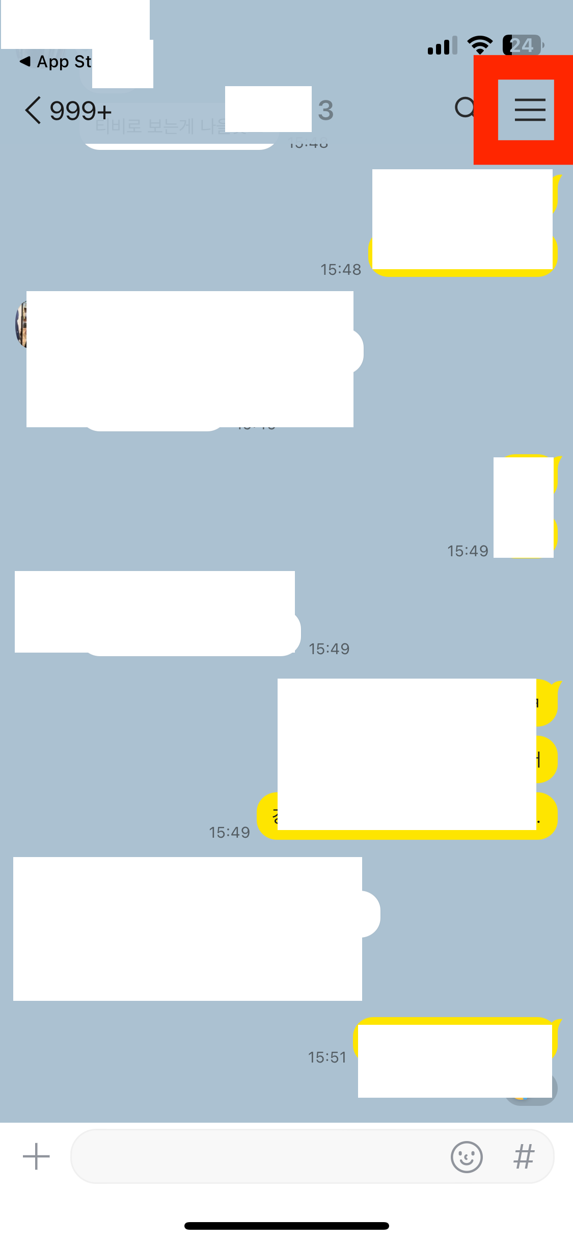 1. 나가고 싶은 채팅방에 입장 > 상단의 3개의 줄 클릭