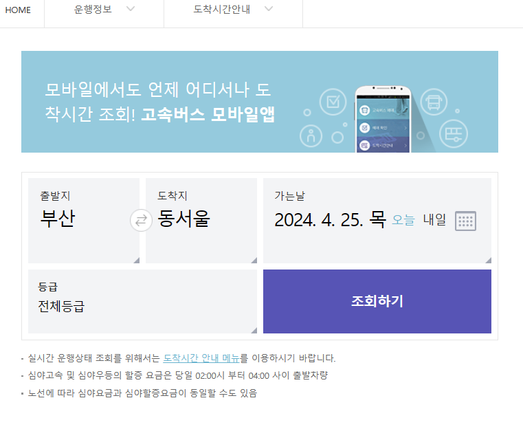 1. 고속버스통합예매 웹사이트에 접속합니다.